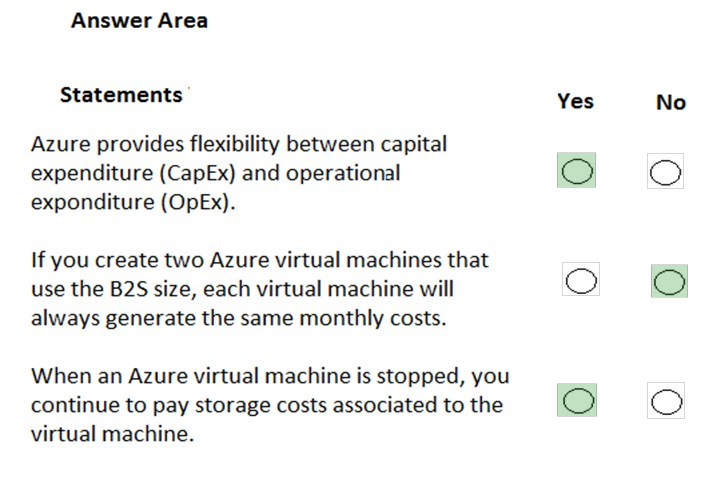 For each of the following statements, select Yes if the statement is true. Otherwise, select No.