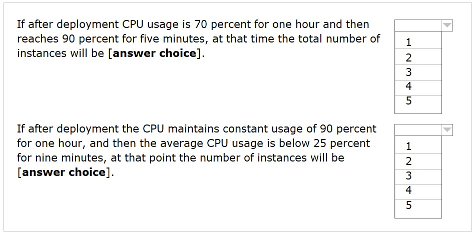 70% for 1h, and then 90% for 5 minutes. So, from the default of 1 it will scale out out 1 more. So, 2 in total.