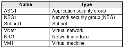 Subnet1 is associated to VNet1. NIC1 attaches VM1 to Subnet1.