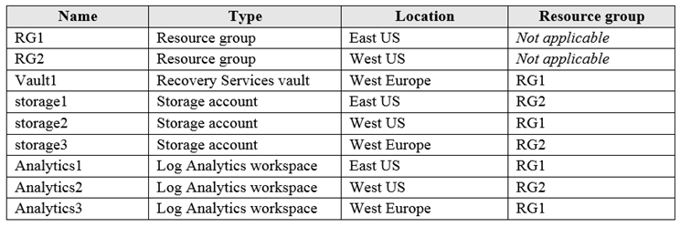 You have an Azure subscription named Subscription1 that contains the resources shown in the following table: