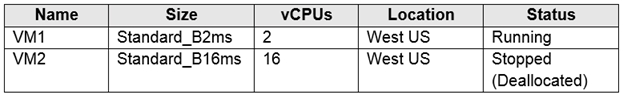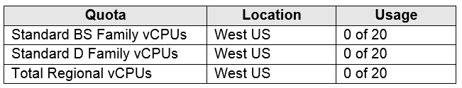 You have an Azure subscription named Subscription1 that contains the quotas shown in the following table.