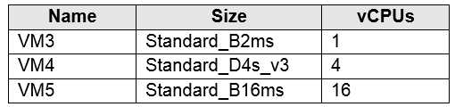 You have an Azure subscription that contains the virtual machines shown in the following table: