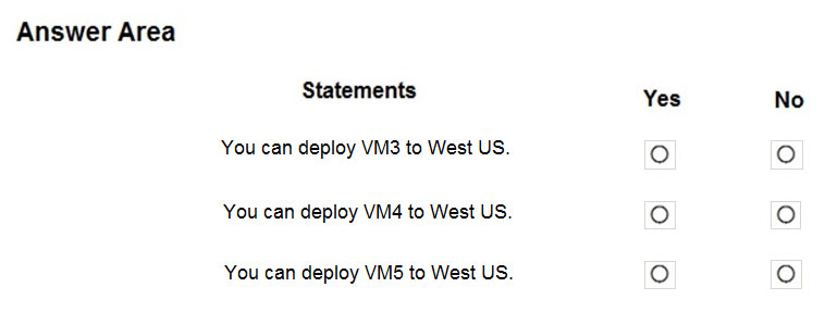 You deploy virtual machines to Subscription1 as shown in the following table.