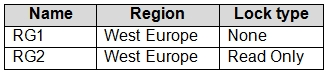 RG2 is read only. ReadOnly means authorized users can read a resource, but they cannot delete or update the resource.