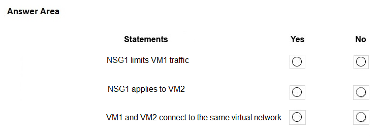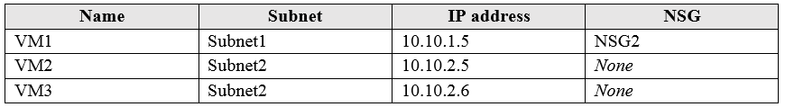 NSG1 is associated to Subnet1. NSG2 is associated to the network interface of VM2.