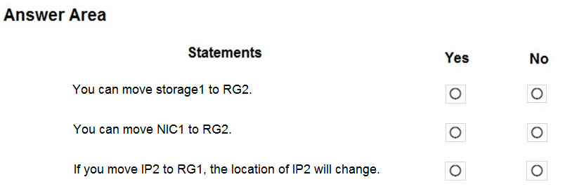 RG2 contains a public IP address named IP2 that is in the East US location. IP2 is not assigned to a virtual machine.