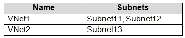 You have an Azure subscription named Subscription1 that contains the virtual networks in the following table.