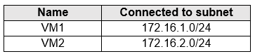 You have two Azure virtual machines that have the network configurations shown in the following table: