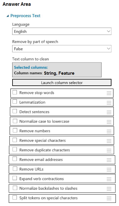 You plan to preprocess text from CSV files. You load the Azure Machine Learning Studio default stop words list.