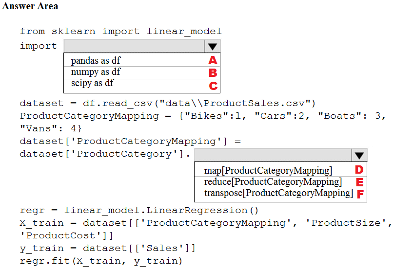 How should you complete the code segment? To answer, select the appropriate options in the answer area.