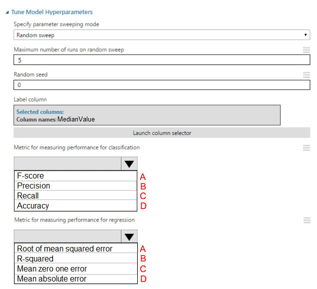 You use Azure Machine Learning Studio to measure the median value of properties. You produce a regression model to predict property prices by using the Linear Regression and Bayesian Linear Regression modules.