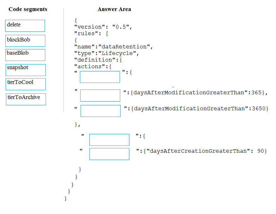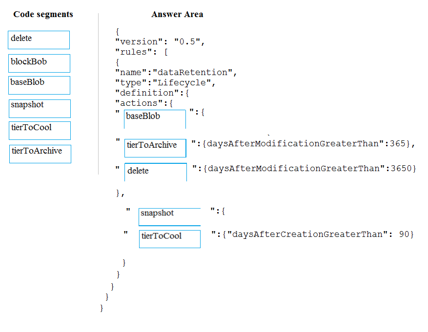 Each JSON segment may be used once, more than once, or not at all. You may need to drag the split bat between panes or scroll to view content.