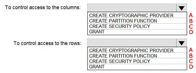 Implement Row Level Security by using the CREATE SECURITY POLICY Transact-SQL statement