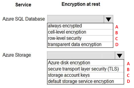 Note: Transparent data encryption encrypts the storage of an entire database by using a symmetric key called the database encryption key. This database encryption key is protected by the transparent data encryption protector.