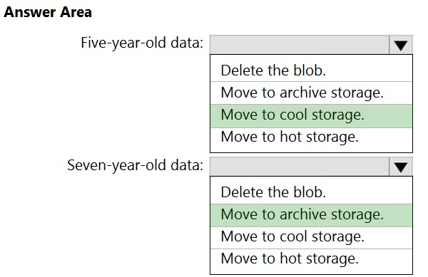 Solution: You apply an Azure Blob storage lifecycle policy.