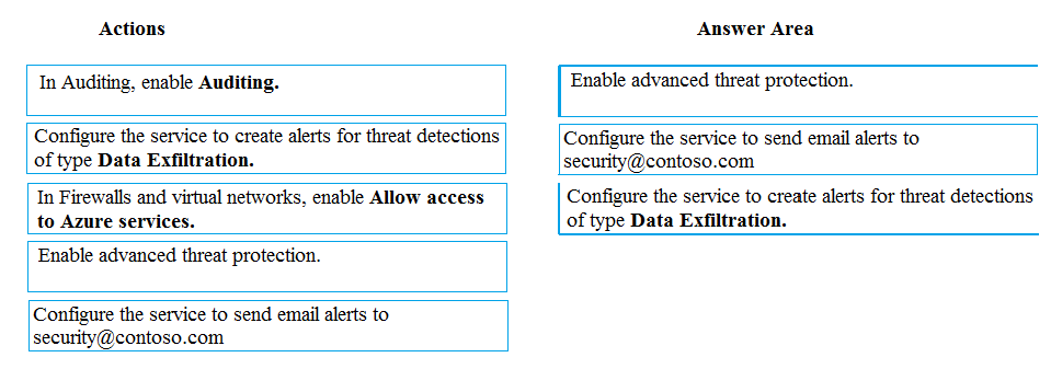 You need to configure Azure SQL Database to email a specific user when data leakage occurs.