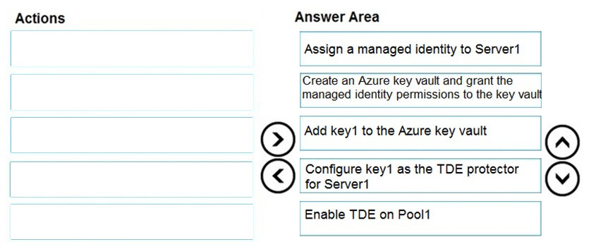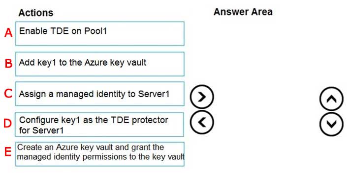 You need to implement Transparent Data Encryption (TDE) on Pool1 by using a custom key named key1.