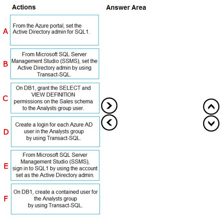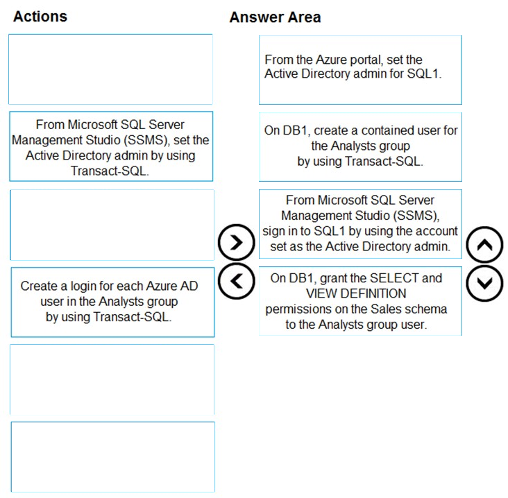 An Azure Active Directory (Azure AD) group named Analysts contains all the users who must have access to DB1.
