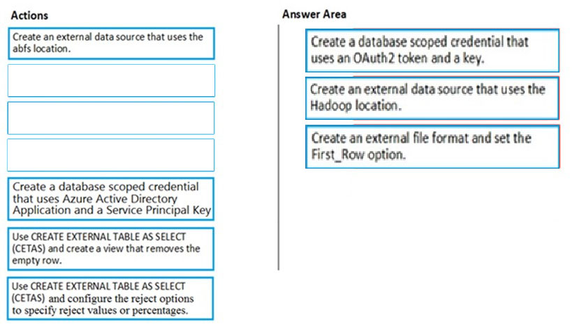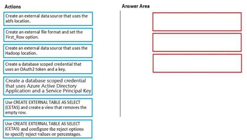 You need to skip the header row when you import the files into the data warehouse. Before building the loading pattern, you need to prepare the required database objects in Azure Synapse Analytics.