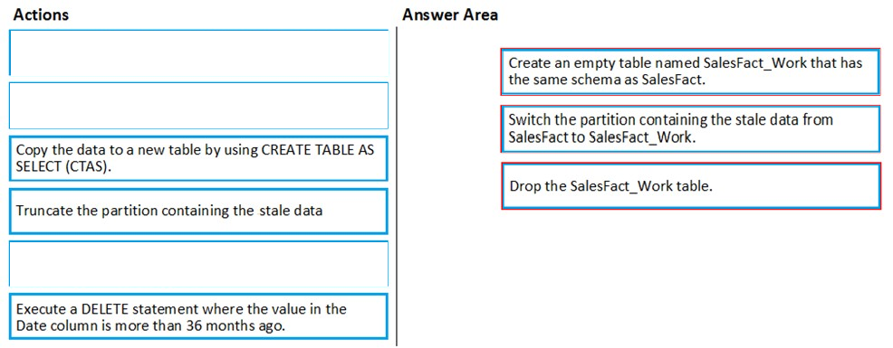 You have a table named SalesFact in an enterprise data warehouse in Azure Synapse Analytics. SalesFact contains sales data from the past 36 months and has the following characteristics: