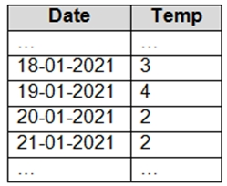 You have an Apache Spark DataFrame named temperatures. A sample of the data is shown in the following table.