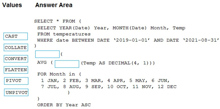 Incorrect Answers: UNPIVOT carries out the opposite operation to PIVOT by rotating columns of a table-valued expression into column values.