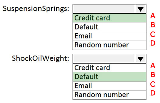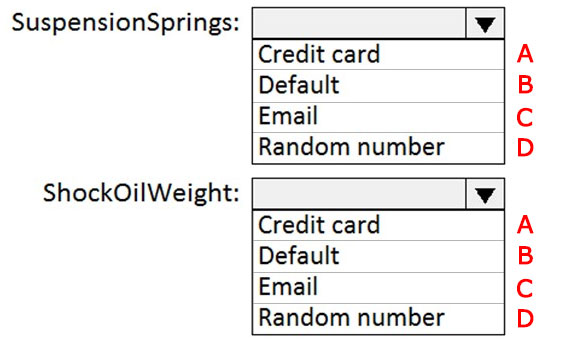 Which masking functions should you implement for each column to meet the data masking requirements?