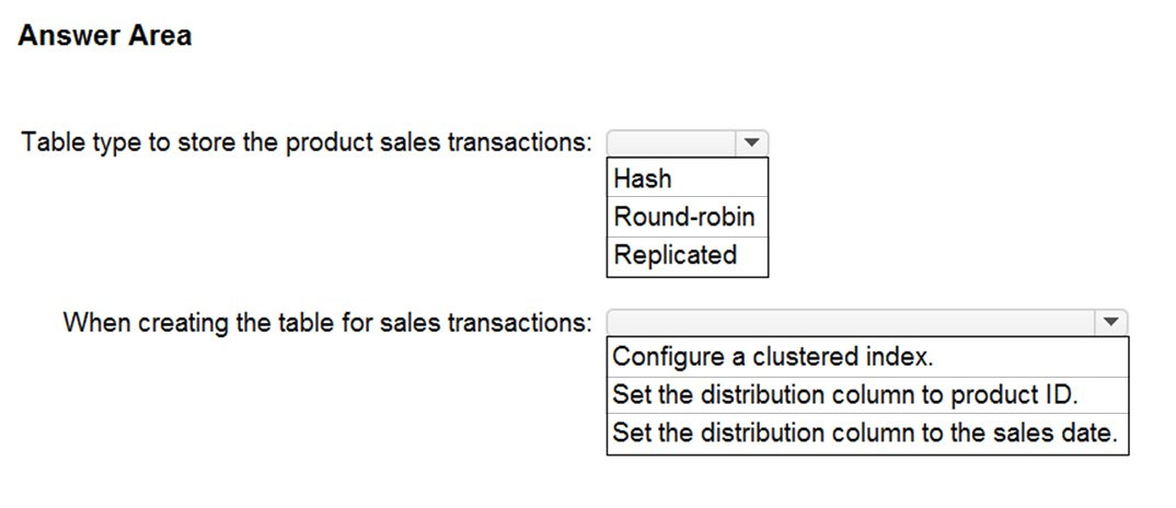 You need to design a data storage structure for the product sales transactions. The solution must meet the sales transaction dataset requirements.