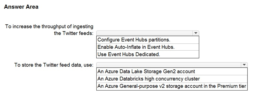 Scenario: Maximize the throughput of ingesting Twitter feeds from Event Hubs to Azure Storage without purchasing additional throughput or capacity units.